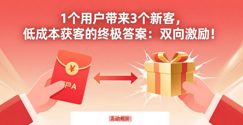 · 電商/本地生活:適合“現金紅包+優惠券”組合(如“邀請得20元無門檻券,好友得10元滿減券”);