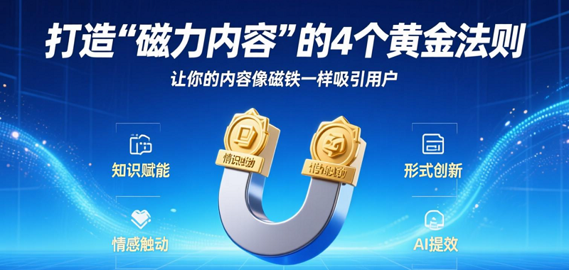 在信息爆炸的時代,優質內容需要具備磁鐵般的吸引力。本文將深入解析知識賦能、情感觸動、形式創新和AI提效四大黃金法則,幫助企業打造用戶主動關注、自愿傳播的磁力內容。